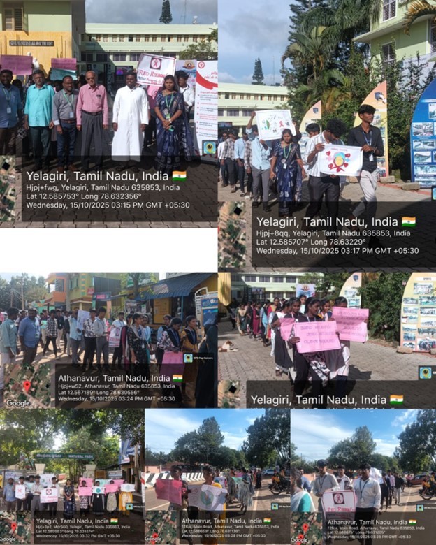 To address this issue, the Red Ribbon Club of Don Bosco College (Co-Ed), Yelagiri Hills, organized an Awareness Rally on HIV/AIDS on 15th October 2025 from 3:00 pm to 3:50 pm at Athanavoor. The event aimed to spread awareness about HIV/AIDS, its causes, effects, and preventive measures among the local people and students.